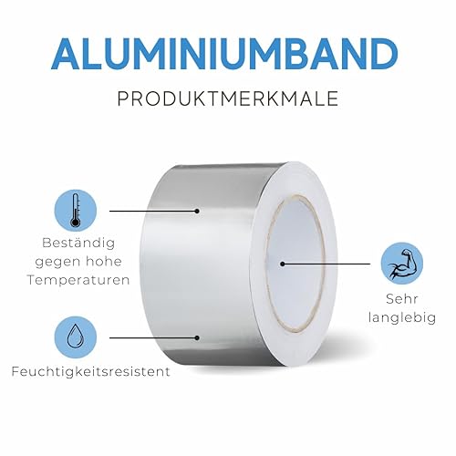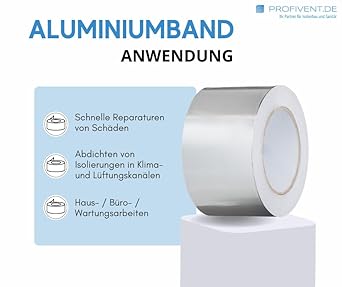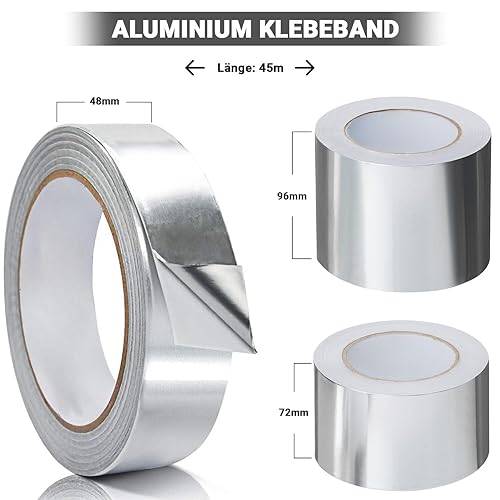 PROFIVENT.DE Aluminium Klebeband Hitzebeständiges Wasserdichtes Alu Klebeband zum Reparieren von Metalloberflächen Metallklebeband UV Aluband Dampfsperre Klebeband 45m (96mm/45m)