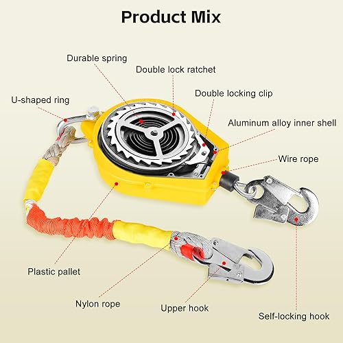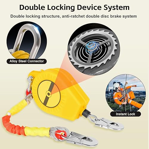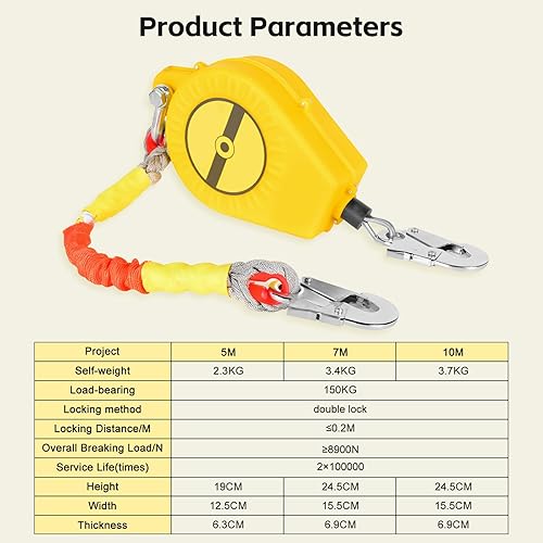 Höhensicherungsgerät Absturzsicherung 5-10m, Absturzsicherung Einziehbar, Absturzsicherung Dach mit Automatischer Sperrfunktion, Klettern Sicherungsgerät Einziehbar, Belastung: 150kg (10m)