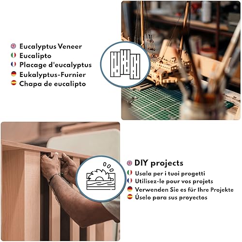 Kontrasti Eukalyptusholzfurnier, geräuchert, ca. 30 cm x 8,5 cm x 0,6 mm x 8 Blätter - Geeignet für: Modellbau, Möbel, Reparaturarbeiten, Renovierung, Basteln und Heimwerker