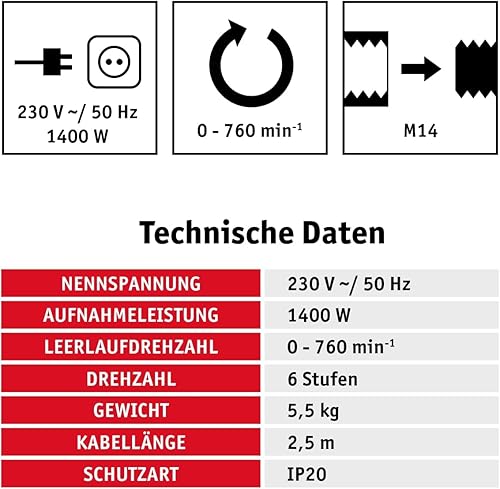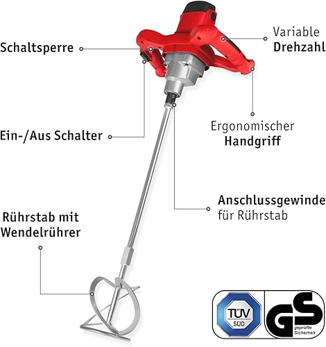 WALTER Farb- und Mörtelrührer 1400 Watt mit Softstartfmechanismus und elektronischer Drehzahlregelung inklusive Rondenrührer Ø 115mm