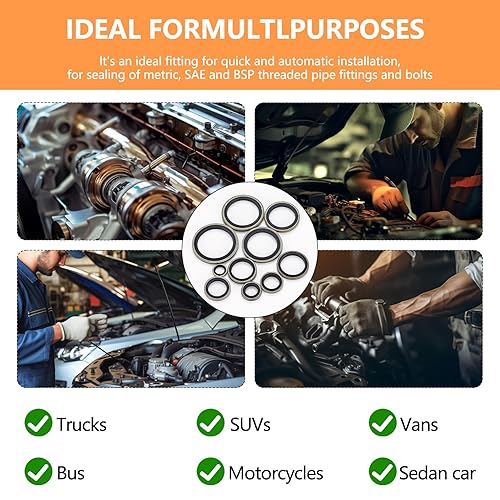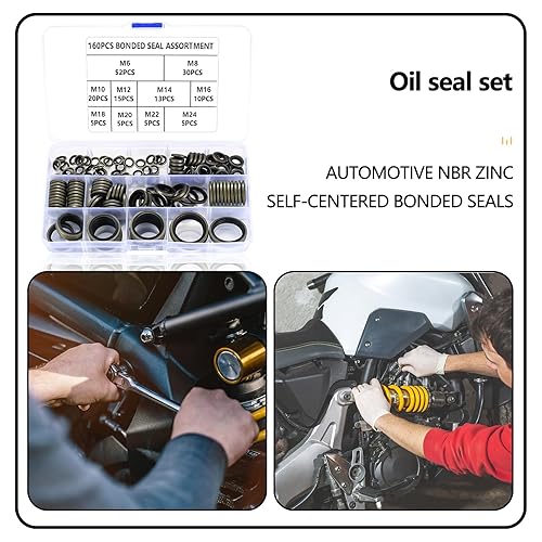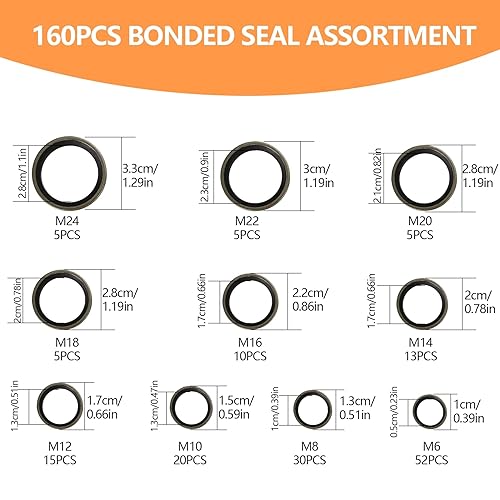 qxayxa Hydraulik Dichtringe mit Gummilippe, 160 Stk Unterlegscheiben Dichtung, Dichtungsringe Sortiment, Ölablassschrauben Dichtring, Bonded Seals Dichtring, M6-M24