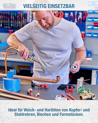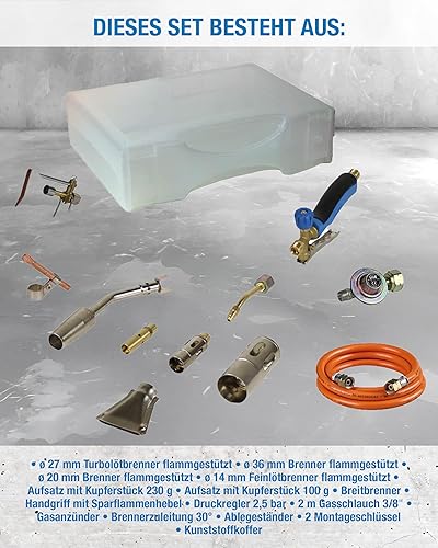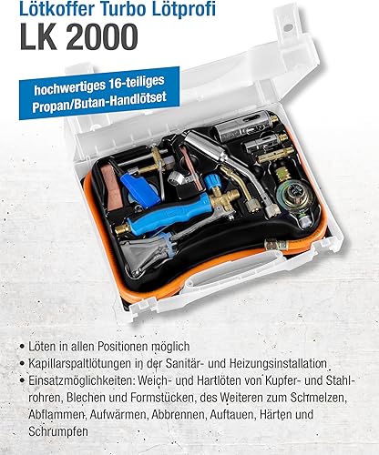 CFH Lötkoffer Turbo Lötprofi LK 2000 - 16-teiliges Lötset zum Hartlöten mit Gas Lötbrenner und Löt Zubehör, Umfangreiches Lötkolben Set im Kunststoffkoffer