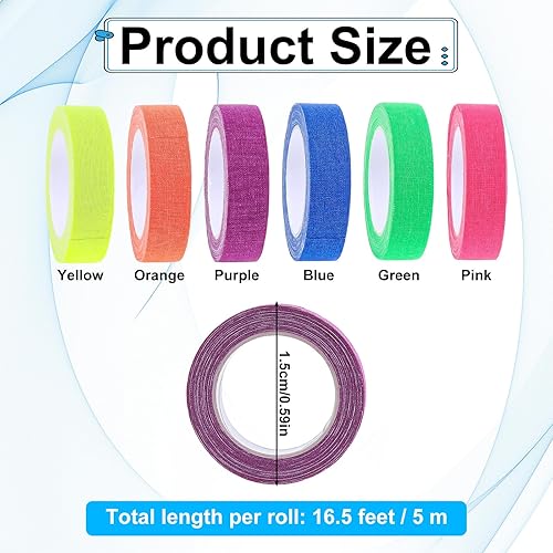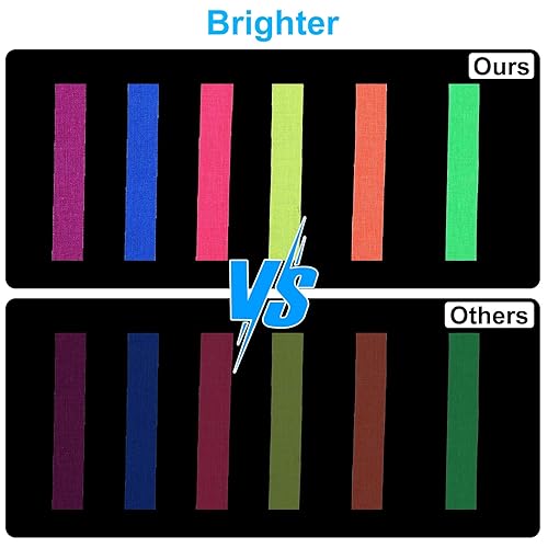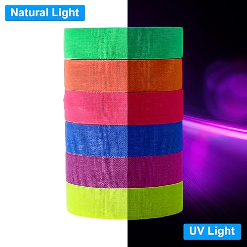 Thinp 6 Rollen Neon Klebeband Schwarzlicht,Fluoreszierendes Klebeband Wasserfest,Leuchtendes Band Selbstklebend,Markierungsband,Warnband Phosphorband,für Treppen Wänden Bühnenbedarf Partydeko-5mx15mm