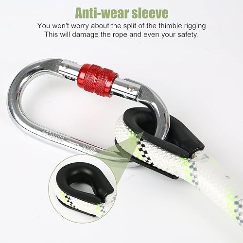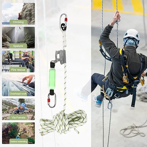 Sicherheitsleine 10M/15M/30M*13mm, Sicherheitsseil Werkzeugleine mit Drahtverschluss & 2 Steigschnallen Absturzsicherung für Outdoor Baumklettern Bergsteigen (Grün+Weiß, 15M)