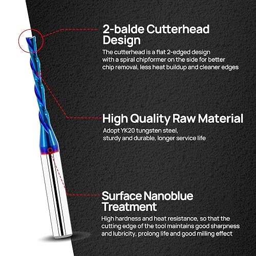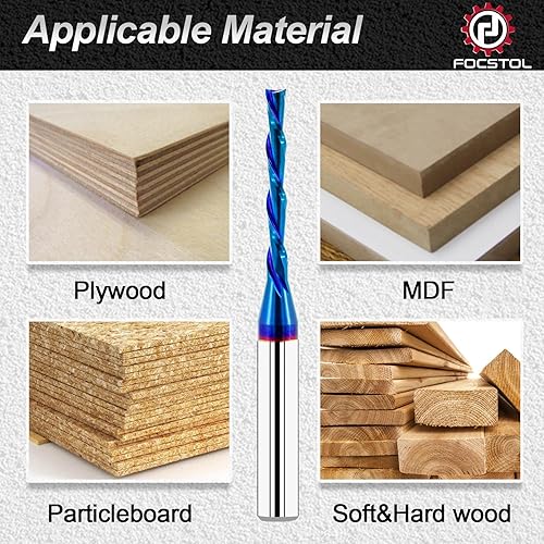 FOCSTOL Spiralnutfräser 3mm Kompression - Fräser CNC Spiralfräser, Upcut Spiralfräser Router Bit mit Nano-Blau-Beschichtung zum Nuten und Schnitzen von Holz