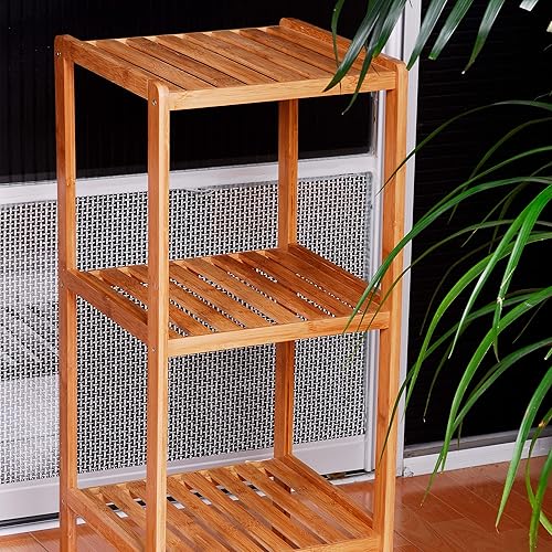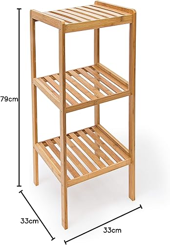 Relaxdays Badregal Bambus mit 3 Ablagen HBT: 79 x 33 x 33 cm Schickes Standregal aus natürlichem Holz Bambusregal als Küchenregal oder Holzregal zur Aufbewahrung und Lagerung im Badezimmer, natur
