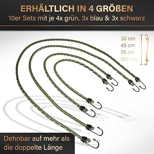 HELDENWERK 10er-Set Expander TÜV/GS geprüft mit Haken Elastisch in 30, 45, 75 und 100cm I Spanngummi mit Haken für Transport, Camping & Sicherung I Spannseil, Gummispanner & Gepäckspanner (30cm)