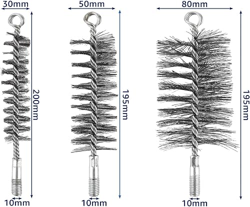 DAJAVE 6 Stück Ofenrohrbürste aus Stahldraht, 30/50/80 mm Rohrbürste, Heizkesselbürste Schornsteinbürste Kaminrohr Rohrbürsten für Reinigen Schornsteinen, Kessel, Pipeline