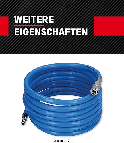 BRILLIANT TOOLS Druckluftschlauch 10m BT160005 Ø 6mm I 10 Meter langer, knickfester PU-Luftschlauch Druckluft mit Schnellkupplungen I 1-15 bar