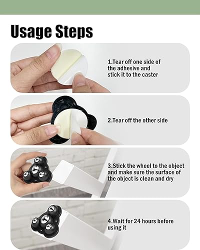 Selbstklebende Lenkrollen, 360° schwenkbare Räder für Möbel, 1' Stahl-Universalrad, 28 LBS Tragfähigkeit pro Rad, Niedrigprofil-Rolle für Büro-Küchengeräte-Lagerbehälter (8 PCS, schwarz)
