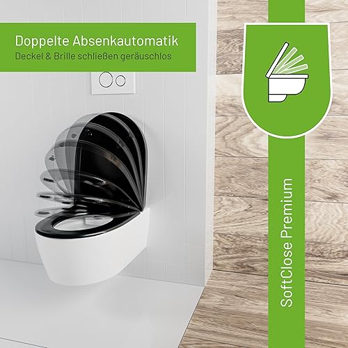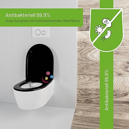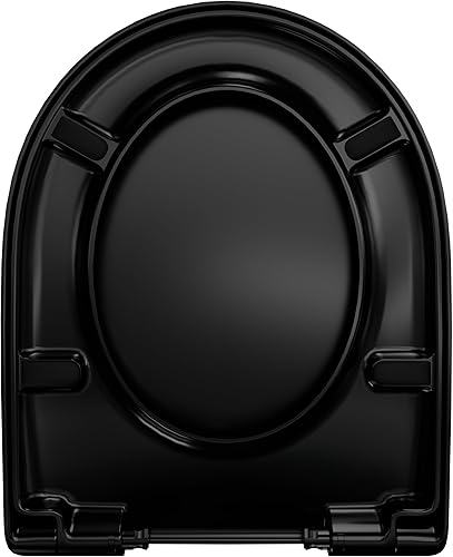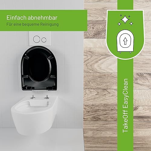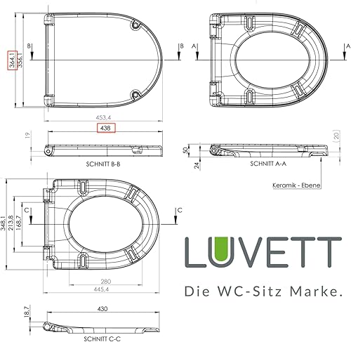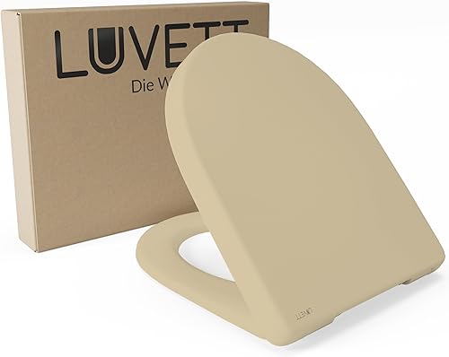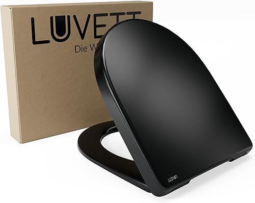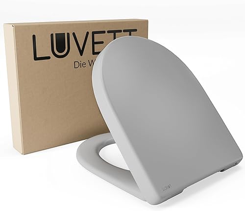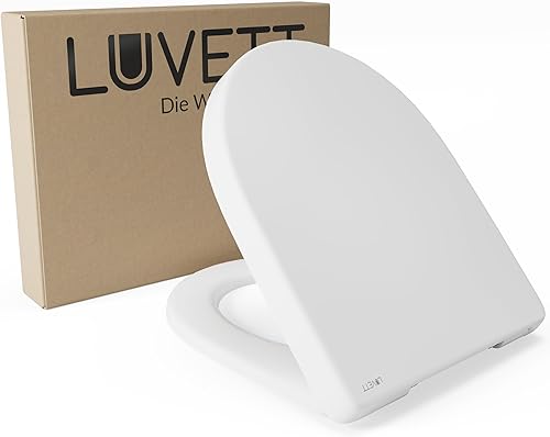 LUVETT® WC-Sitz mit Absenkautomatik D140 D-Form Soft Close® & TakeOff EasyClean Abnahme, hygienisch & beständig Duroplast WC-Deckel mit 3in1 Edelstahl Scharnier-Set, Farbe:Weiß