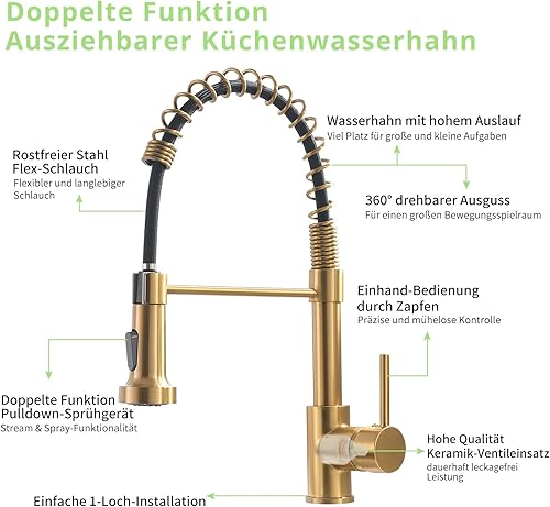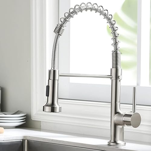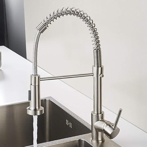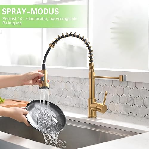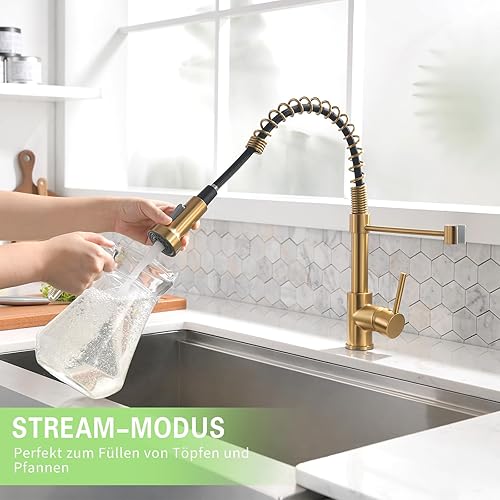Aimadi Küchenarmatur Mischbatterie Küche Wasserhahn Spiralfederarmatur Küchenspüle Geschirrbrause Spültischarmatur Einhandmischer Ausziehbar Gebürsteter Nickel