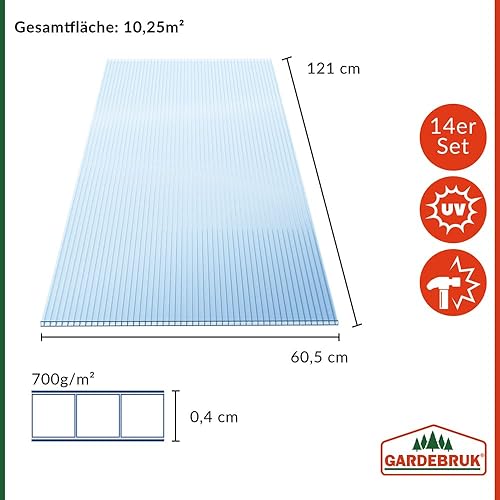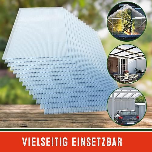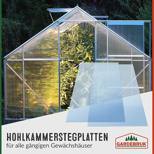Gardebruk 14x Polycarbonat Hohlkammerstegplatten 4mm 50x Edelstahl Gewächshausklammern 10,25 m² Doppelstegplatte 1210x605 Stegplatte Gewächshausplatte