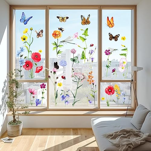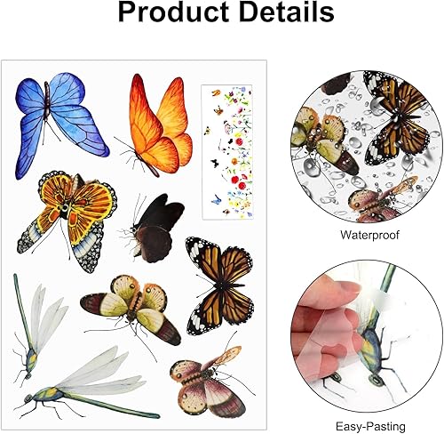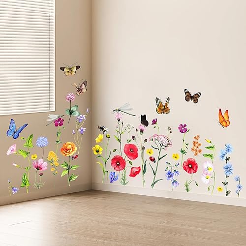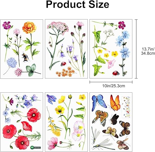 EEEKit Wandkunst Aufkleber, 6 Stück Abnehmbare Blumen Schmetterling Libelle Wandtattoos, Blumen Wanddekoration für Zimmer