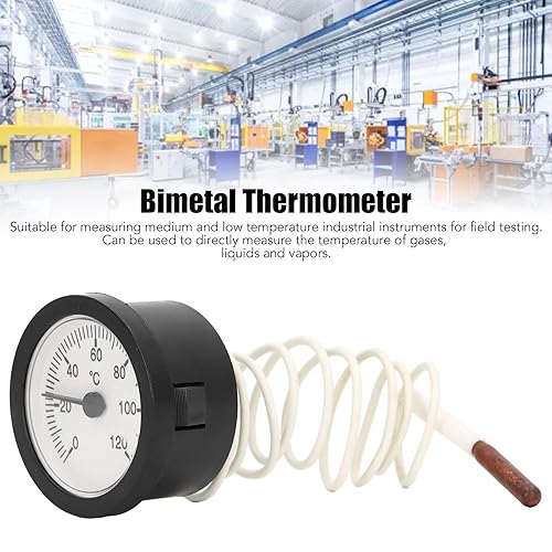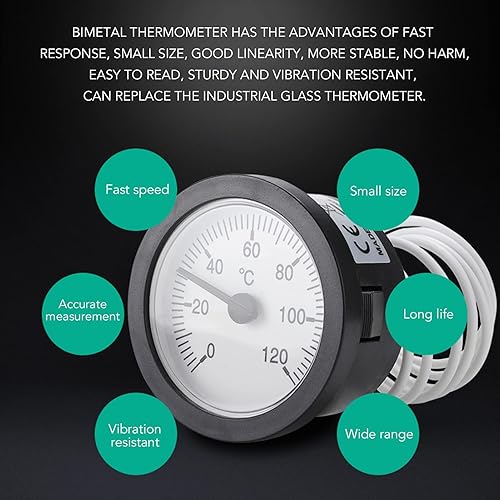 Fewb Bi Metall Temperaturanzeige, 0-120℃ Thermometer, Rundes Gas Dampfthermometer mit Verlängerungskabel für Warmwasser, Boiler und Rohre, Taschengrilltemperatur für Inkubatoren