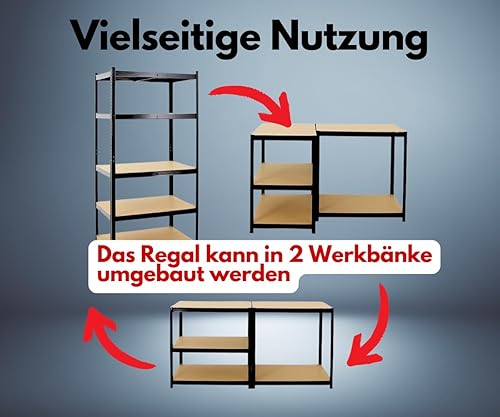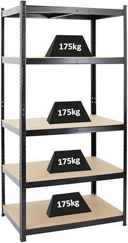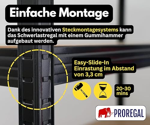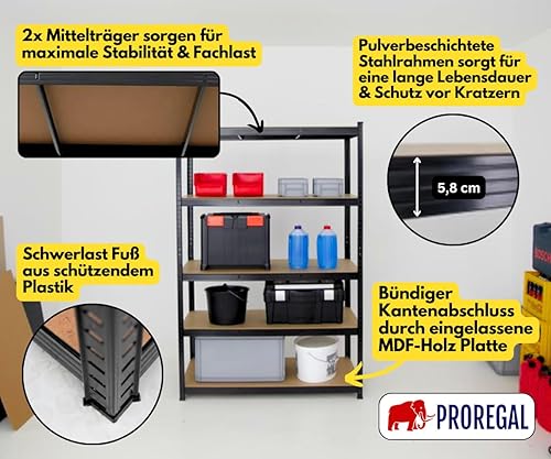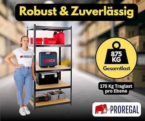 PROREGAL Schwerlastregal Taurus XL mit TÜV/GS Zertifizierung 180x160x60cm Gesamtlast 1000kg Schwarz Kellerregal, Steckregal, Garagenregal, Lagerregal