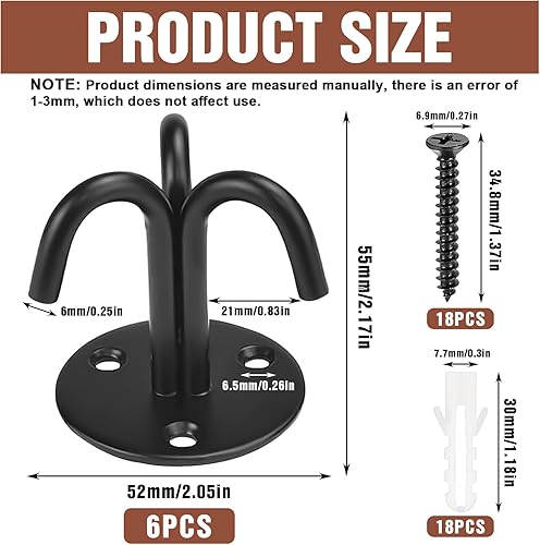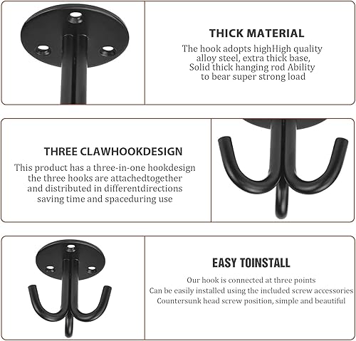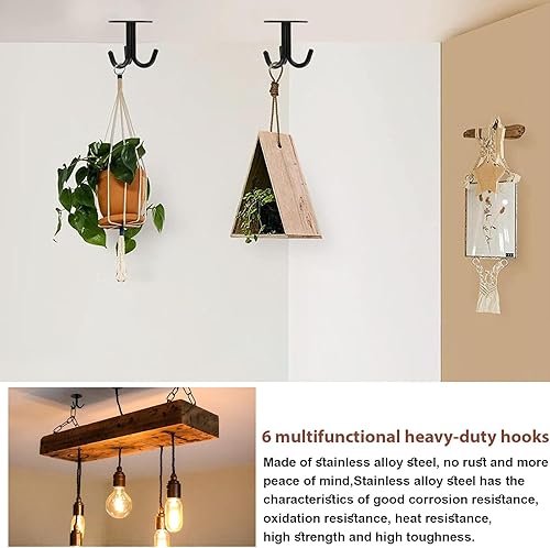 Ouzionz 6 Stück Decken Mit Schrauben Haken Deckenhaken, Deckenplatte Haken,3 Fach schwerlasthaken, Dreifachhaken Schwarz Wandhalterung für hängende Pflanzenhaken, Deckenventilator,Leuchter