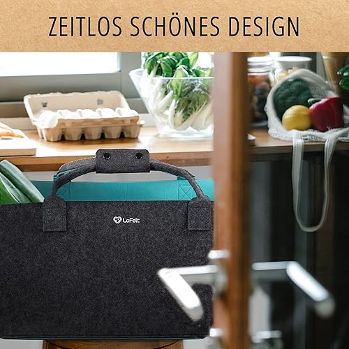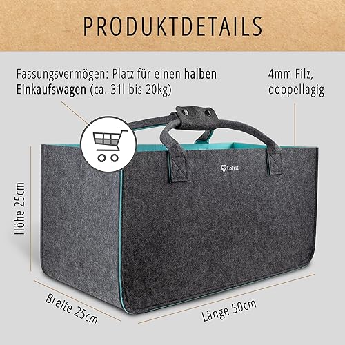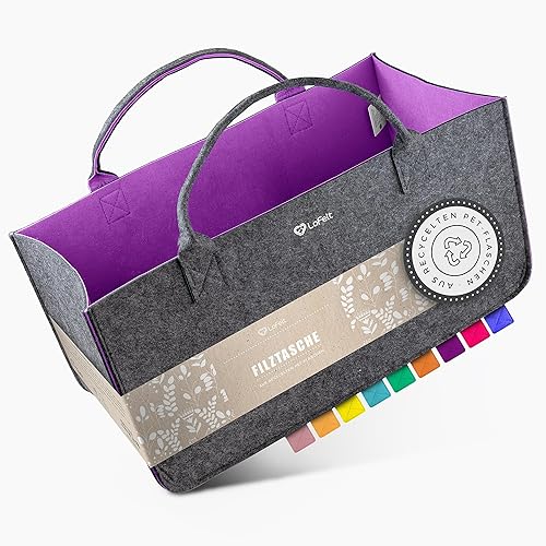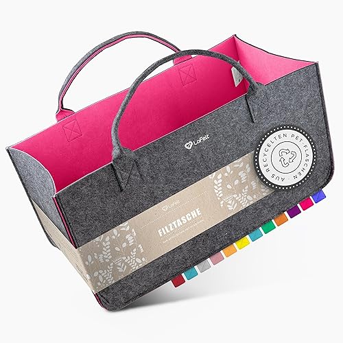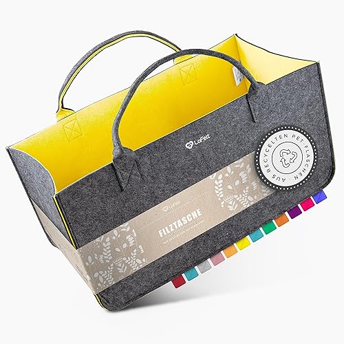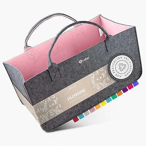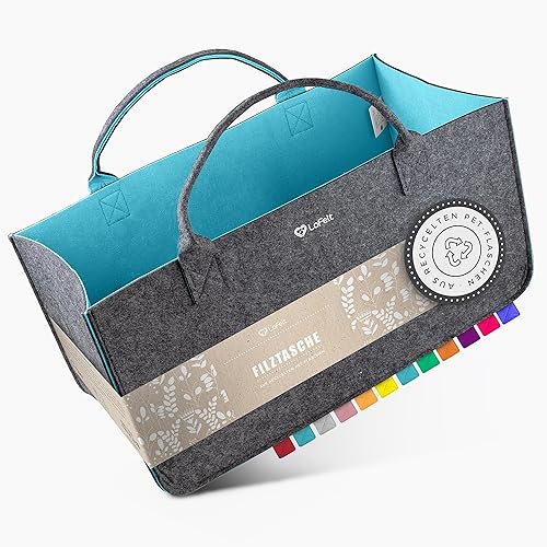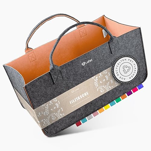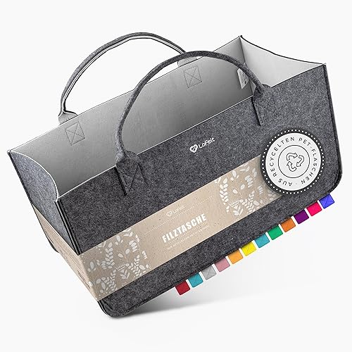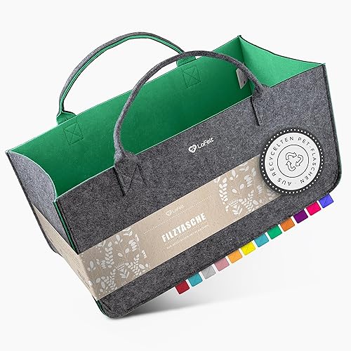 LoFelt® Filztasche, Holzkorb, Brennholzkorb, Kaminholz, aus 100% recyceltem Plastik/Filztasche groß geeignet als Filz Einkaufstasche, Kaminholztasche, Filzkorb, Grau