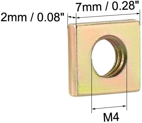 sourcing map 50 Stücke Vierkantmuttern M4x7mmx2mm gelb verzinkt metrisches Sortiment Kit