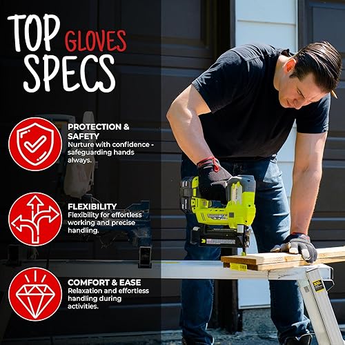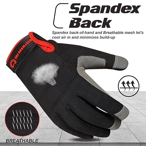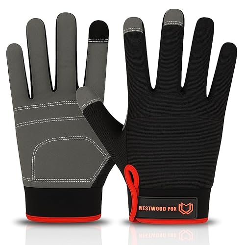 WESTWOOD FOX Leichte Arbeitshandschuhe, Herren Damen Multifunktionale Arbeitshandschuhe mit Handflächenschutz Gartenarbeit Bauarbeitshandschuhe Touchscreen Strapazierfähige (Schwarz, L)
