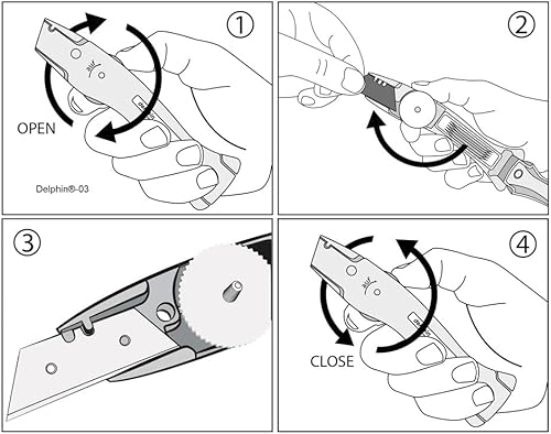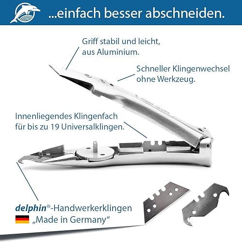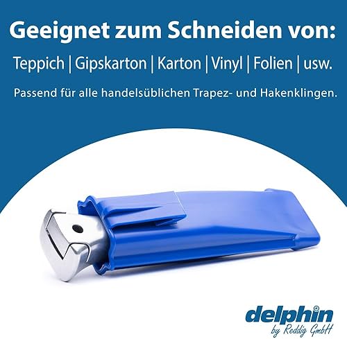 Teppich- und Vinylmesser-Set, bestehend aus Delphin®-03-Messer, 10 Delphin®-Hakenklingen, 10 Delphin®-Trapezklingen, Kunststoffköcher