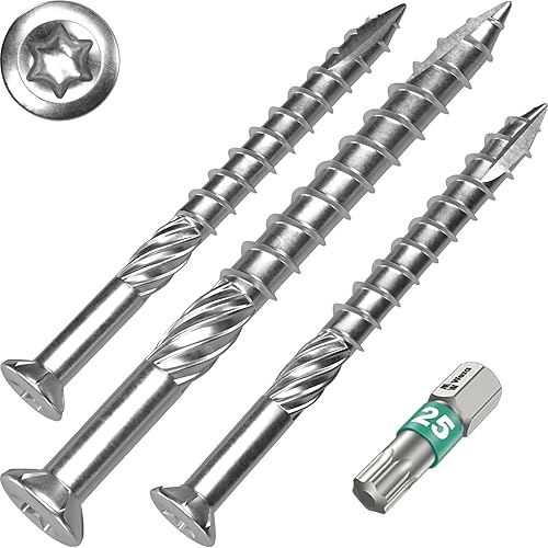SCREW REBEL Terrassenschrauben 5 x 70 T-INOX 200 Stück Edelstahl gehärtet C1, Torx 25 inkl. Edelstahl Bit
