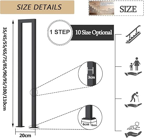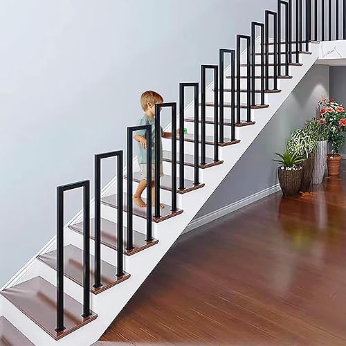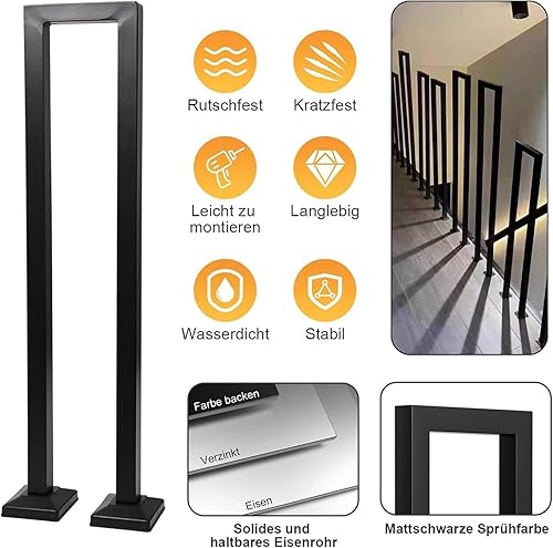 Treppengeländer Außen,Handlauf Schwarz,Geländer Außen,U-förmige Treppengeländer Innen, Handlauf Treppe, Geländer Treppe, für Balkone Flure Wohnungen Villen Geländer. (U-Schwarz, 85CM)