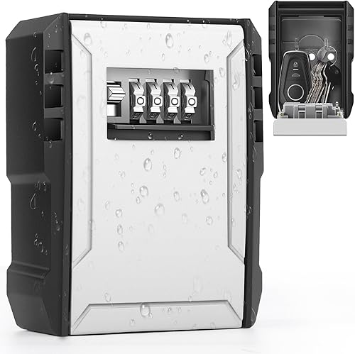Gaethra Schlüsseltresor mit Zahlencode, Mittelgroß Schlüsselsafe 4 Stellig, Wasserdicht Rostfrei Schlüsseltresor Außen, für Zuhause, Büro, Schule, Garage und Mehr(Eine Karte und Vier Schlüssel)