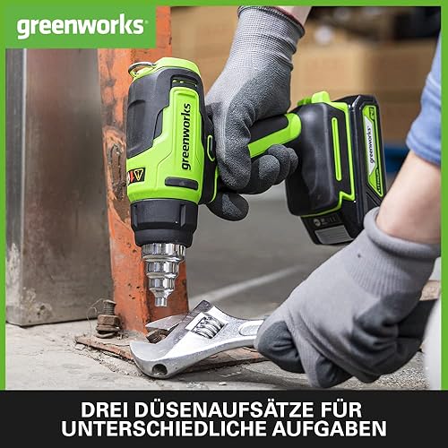 Greenworks G24HG Akku Heißluftpistole, schnelles Aufheizen in 9 Sekunden, 200L/Min 2 Stufen, OHNE 24V Akku & Ladegerät, 3 Jahre Garantie