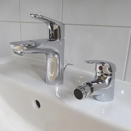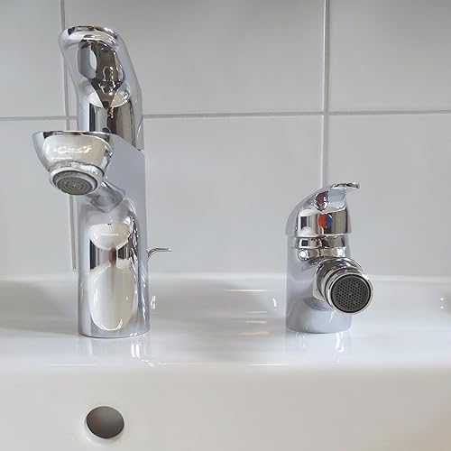 Cornat Bidet-Einhebelarmatur 'Piccolo' - Verchromter Messingkörper - Normale Auslaufhöhe - Mit Ablaufgarnitur - Luftsprudler / Bidetmischer fürs Bad / Bidetbrause / SA844