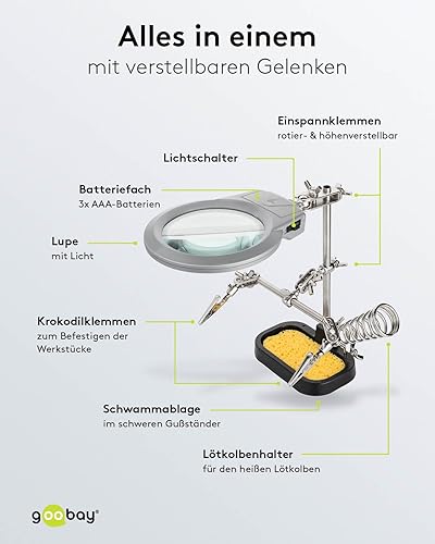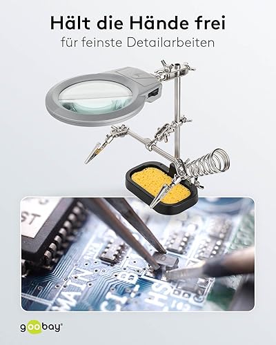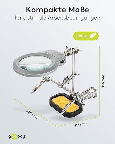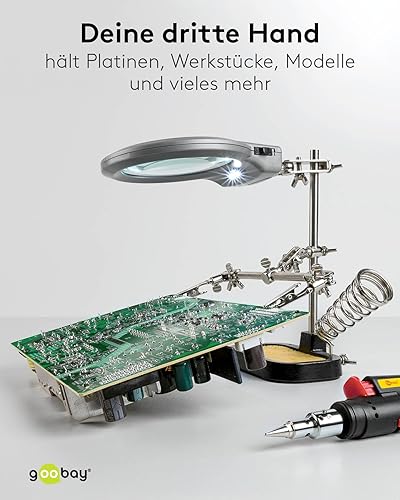goobay 51226 Löthlife dritte Hand mit Lupe und Lötkolbenhalter die Ideale Hilfe für alle filigranen Lötarbeiten,schwarz