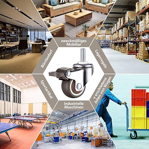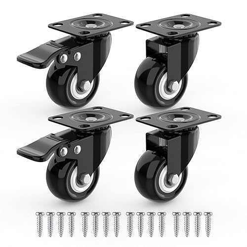 Möbelrollen schwarz 40mm, Rollen für Möbel 4er set, Möbelrollen mit bremse, Lenkrollen schwarz, Schwerlastrollen Gummirollen (2 mit Bremsen + 2 ohne Bremsen)