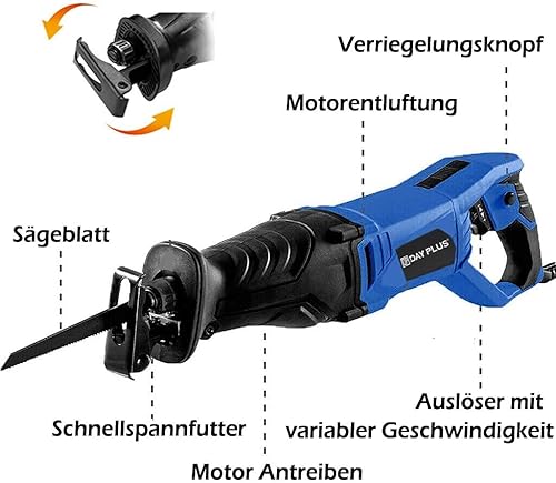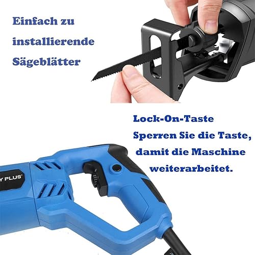 Säbelsäge 900W Elektrischer Säbelsäge mit Säbelsägeblatt 5 Stück, Professional Reciprosäge 2800RPM Stichsäge für Holz Metall