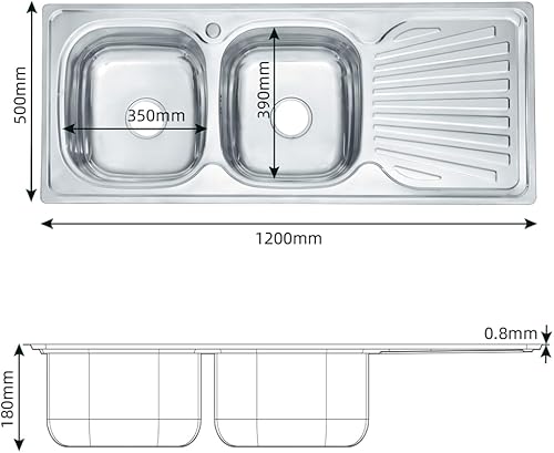 Melko Edelstahlspüle 2 Becken Küchenspüle Waschbecken Spülbecken Doppelspüle mit Abtropffläche