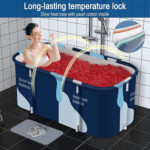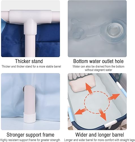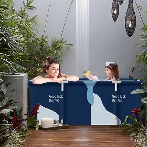 Faltbare Badewanne für Erwachsene 133x64x47cm, Sauna-Dampfbadeeimer, Heiße Dusche und Eisbad, Tragbar Nicht Aufblasbar (Blau-Weiß)