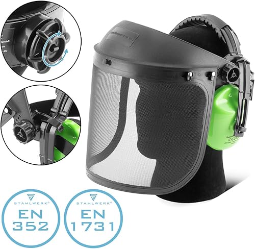 STAHLWERK Gesichts- und Gehörschutz-Kombination EN352 EN1731 Schutzvisier | Forsthelm | Schutzhelm | Augenschutz | Schutzmaske | Kopfschutz | PSA für Agrar-, Forst- und Baugewerbe