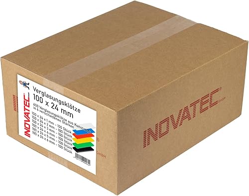 600 x INOVATEC Kunststoff Verglasungsklötze Set Glasklötze Unterleger 100x24x 1, 2, 3, 4, 5, 6 mm Distanzklötze Trageklötze Abstandshalter
