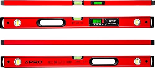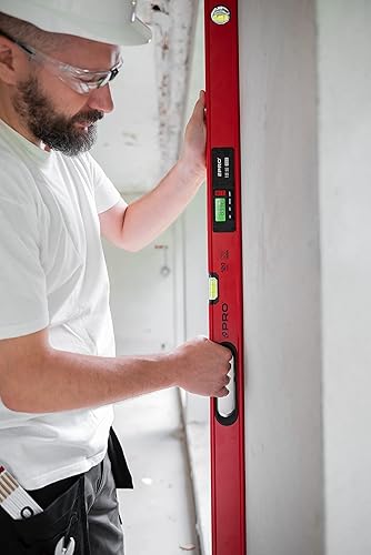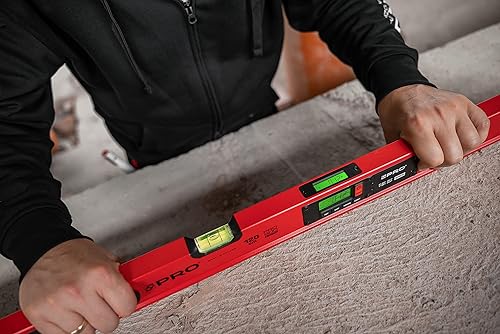 PRO900 Digitale Wasserwaage 60cm mit 2 LCD Displays und Abdeckung - Elektronische Wasserwaage mit Messwertspeicher für bis zu 19 Ergebnisse Schutzart IP65 - Farbe Rot
