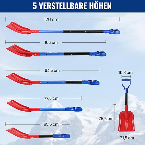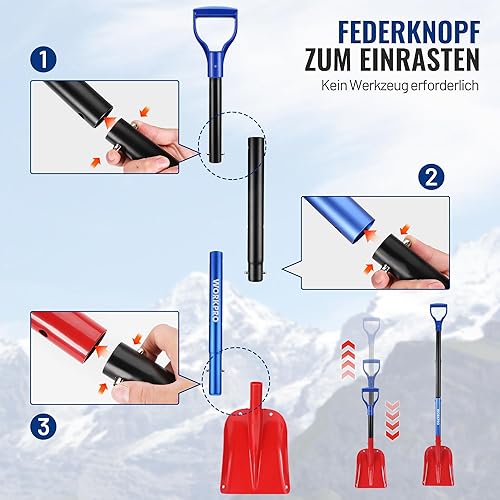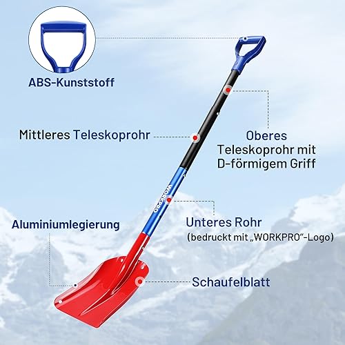 WORKPRO Schneeschaufel Aluminium, Abnehmbare Schneeschaufel mit teleskopierbarem Griff, 65,5-120 cm, Schneeschieber Lawinenschaufel mit Tragetasche, Ausziehbares Schneeräumwerkzeug für Garten, Camping