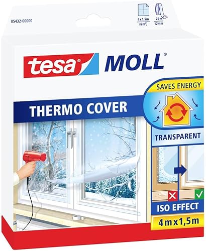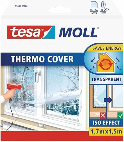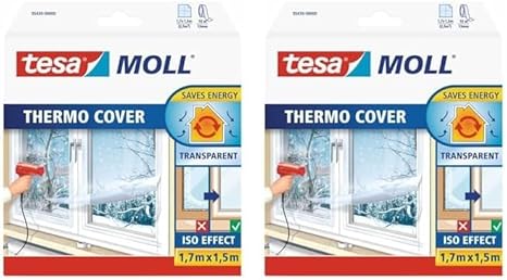 tesamoll Thermo Cover Fenster-Isolierfolie - Transparente Isolierfolie zur Wärmedämmung an Fenstern - Inklusive praktischer Klebelösung - 1,7 m x 1,5 m (Packung mit 2)