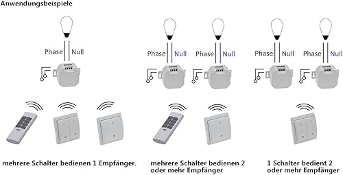 Funk-Schalter Set Pilota Casa 2x Funk-Empfänger mit Funk-Wandschalter 2-Kanal 230V LED bis 300 Watt Bis 70m Reichweite