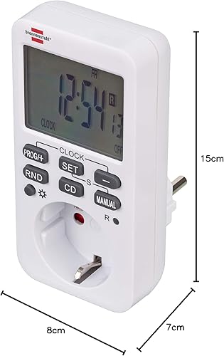 Brennenstuhl Comfort-Line Digitale Wochenzeitschaltuhr, digitale Timer-Steckdose (Wochen-Zeitschaltuhr für Innenbereich, Countdown-Funktion und mit erhöhtem Berührungsschutz) weiß