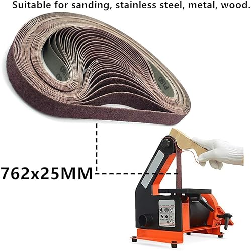 FEIHU Aluminiumoxid-Schleifbänder 40 x 760 mm.5 verschiedene Körnungen. je 3 x Korn40/80/120/180/320,Schleifband-Set, für kompatibel mit Rohrbandschleifer,Bandschleifer,Polieren Metall,Holz(15 Stück)