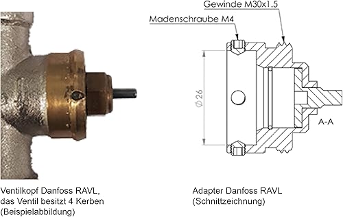 Eurotronic 700099 Danfoss RAVL, Metalladapter für Heizkörperthermostate (Zubehör für Heizungsthermostat, hochwertiger Heizkörperventiladapter, lange Lebensdauer, Anschluss: 26mm)