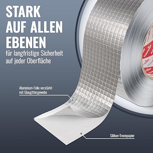 POPPSTAR Aluminium-Klebeband netzverstärkt für Rohrisolierung & Dämmung (50m x 72 mm) Hitzeschutz & Dampfsperre Aluklebeband hitzebeständig 72mm selbstklebend