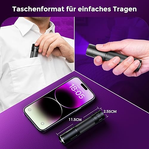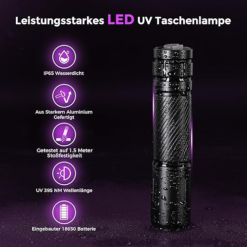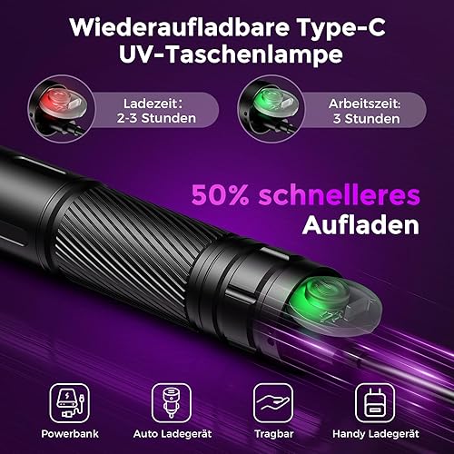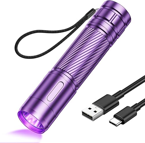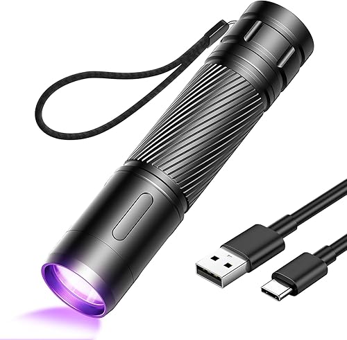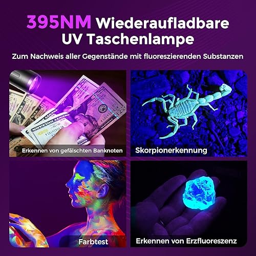 GEARLITE Wiederaufladbar LED UV Schwarzlicht Taschenlampe, Leicht Mini UV Lampe Ultraviolettes Licht mit 395nm Robust Wasserfest für Bernsteinsuche Geocaching Heimtierurindetektoren Unechte Banknoten