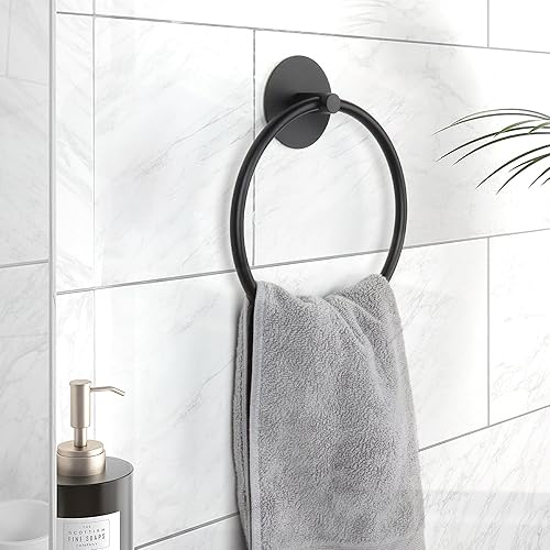 Meplait Badezimmer Handtuchring Edelstahl Badezimmer Handtuchhalter Kleber Wandmontage Handtuchhalter für Badezimmer (Schwarz)