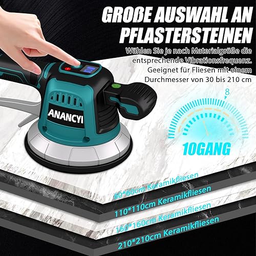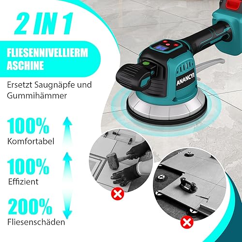 Fliesenleger Maschine für Makit 18V, Elektrische Fliesen Vibrator Mit 15cm Saugnapf 10 Gänge einstellbar 100kg Aufnahmekapazität Fliesen Fliesenleger Maschine Geeignet für 47 zoll Fliesen (Ohne Akku)