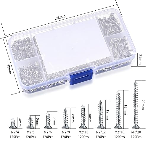 M2 selbstschneidende Holzschrauben, Kreuzkopfschrauben, Flachkopfschrauben, selbstbohrende Bechschrauben, Senkkopfschrauben - M2x (4 mm/5 mm/6 mm/8 mm/12 mm/16 mm/20 mm)