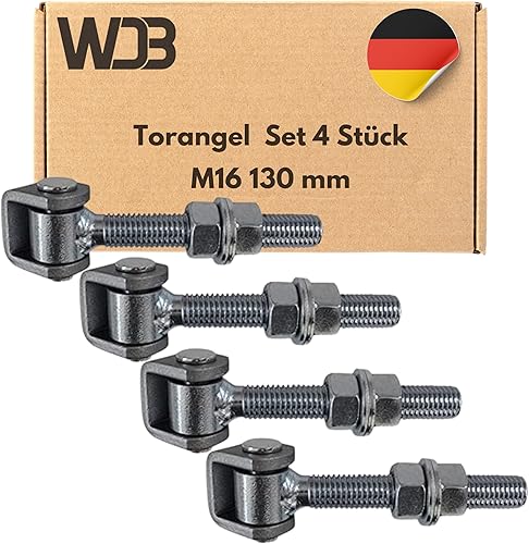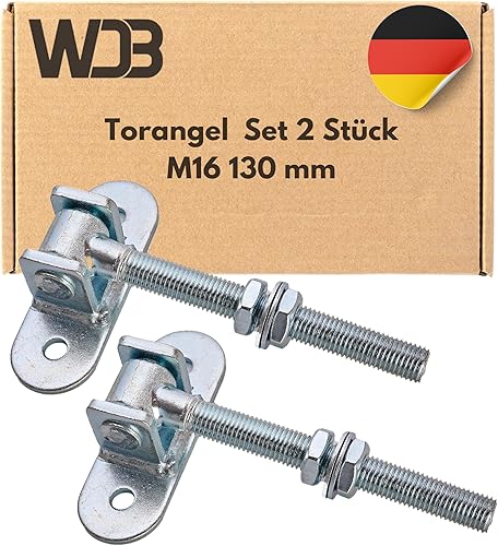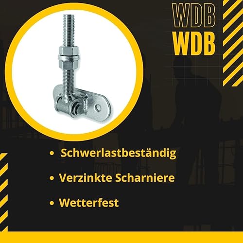 WDB - Torangel Regulierbar Verzinkt - Scharniere Gartentor - Scharniere Schwerlast - Toranlage - Torscharniere Hängescharniere - 2 Stück Einstellbares Torscharnier M16 130 mm